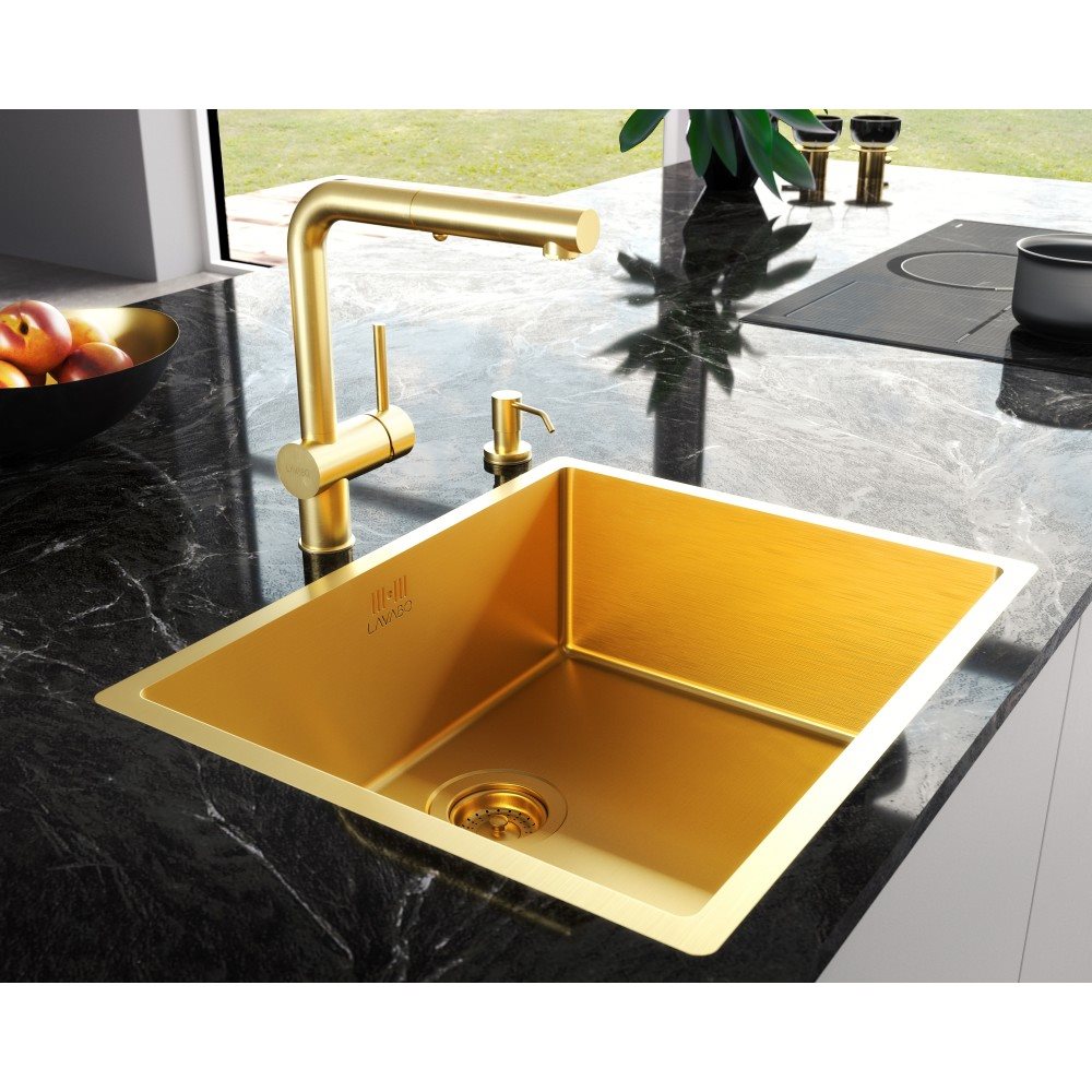 Lavabo Kubus 500 soft køkkenvask i ægte massiv messing (patinere ved brug)