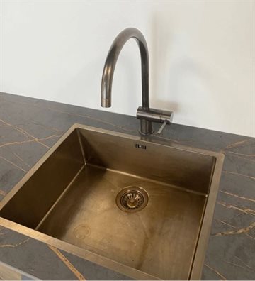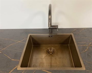 Messing trenden er virkelig blomstret i takt med vores hang til luksus. Bruneringen giver vaskene et unikt og rustikt udseende og er en fin kontrast til fx minimalistisk og moderne køkkenindretning. Denne køkkenvask er af ægte massiv messing (godstykkelse 1,2 mm) som anløber og får patina. Denne udtryksfulde patinering sker over tid og giver køkkenvasken et råt og autentisk look.