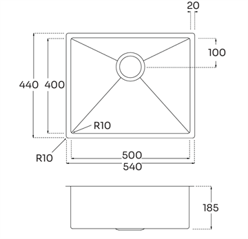Lavabo Kubus 500 Soft Køkkenvask 54 x 44 cm med kurveventil og overløbshul, mat sort