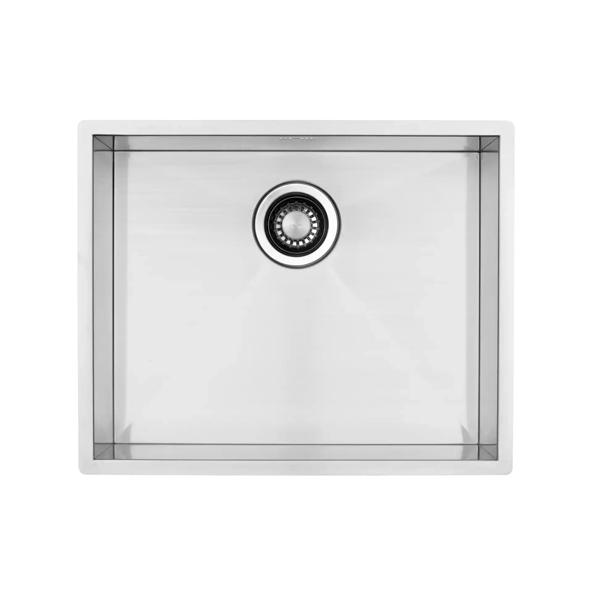 Rustfri køkkenvask i firkantet design – uden hanehul