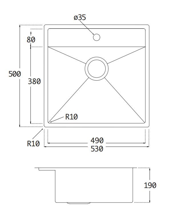 De bløde og afrundede hjørner (R10) giver et moderne og harmonisk udtryk, men gør samtidig vasken mere rengøringsvenligt og hygiejnisk, da det minimere ophobning af snavs. Flot kvadratisk vask med optimal udnyttelse af pladsen, som derfor er velegnet til køkkenet, hvor pladsen er trang.