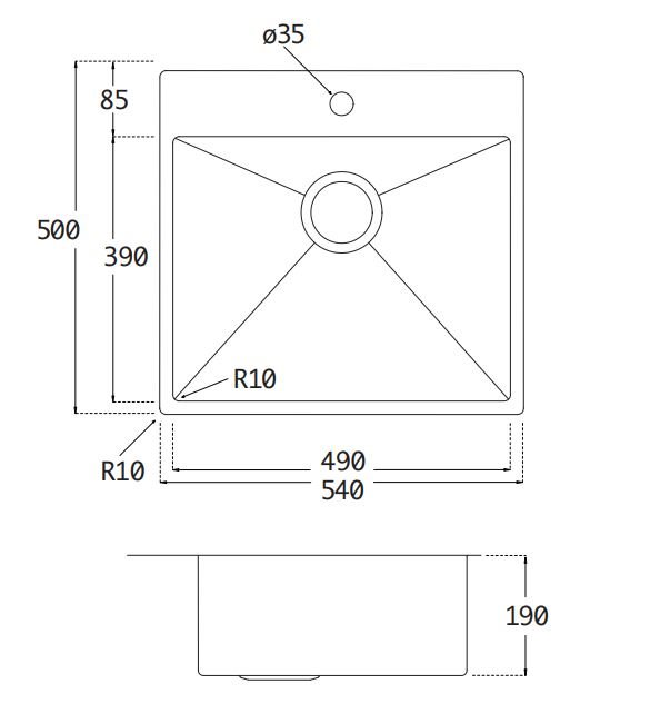 De afrundede hjørner (R10) giver et moderne og harmonisk udtryk, men gør samtidig vasken mere rengøringsvenligt og hygiejnisk, da det minimere ophobning af snavs. Vasken har desuden kuvertbund, hvilket betyder at vandet nemt løber i afløbet.