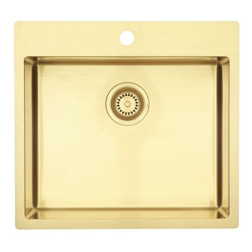 Lavabo Kubus 540 soft køkkenvask i messing/guld PVD med manuel strainer samt hanehul til vandhane og overløbshul. art.nr. 10255