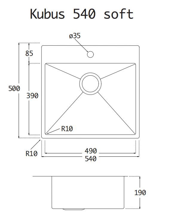 De afrundede hjørner (R10) giver et moderne og harmonisk udtryk, men gør samtidig vasken mere rengøringsvenligt og hygiejnisk, da det minimere ophobning af snavs.