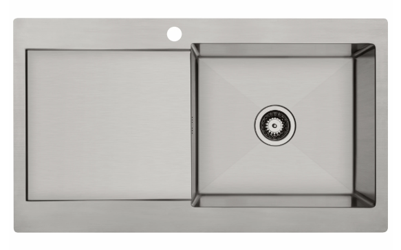 Lavabo Kubus 90 R Soft Køkkenvask med afløbsbakke med kant 90x50 cm i rustfrit stål inkl. manuel strainer, hanehul og overløb.