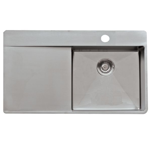 Lavabo Kubus 900 Soft Køkkenvask med afløbsbakke 90x50 cm i rustfrit stål inkl. manuel strainer, hanehul og overløb.