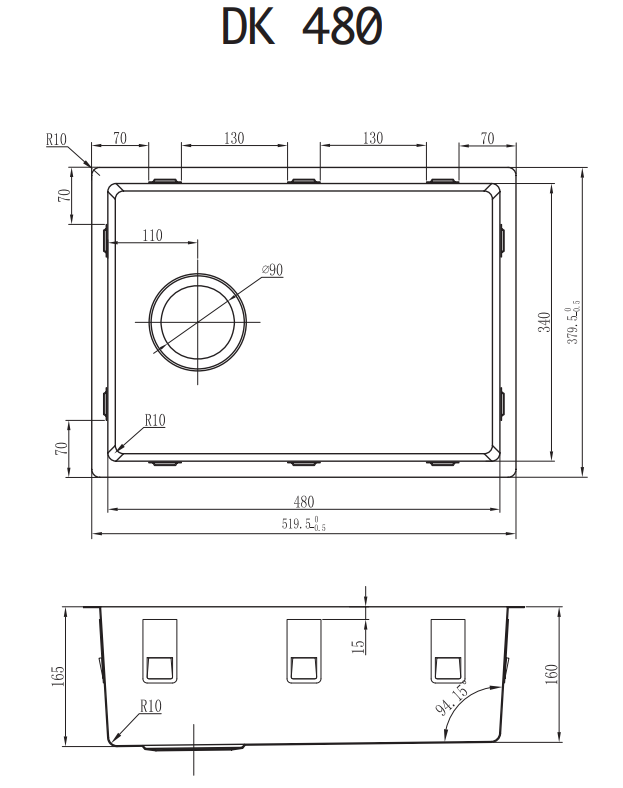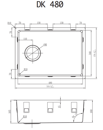 Lavabo Kubus DK480 køkkenvask til Nedfældning , Planlimet , Underlimet