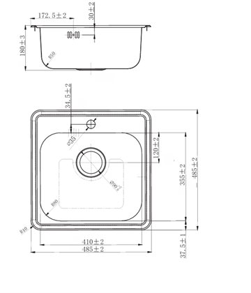 Lavabo LA 410 køkkenvask 410x355 mm m/hanehul, Rustfrit stål