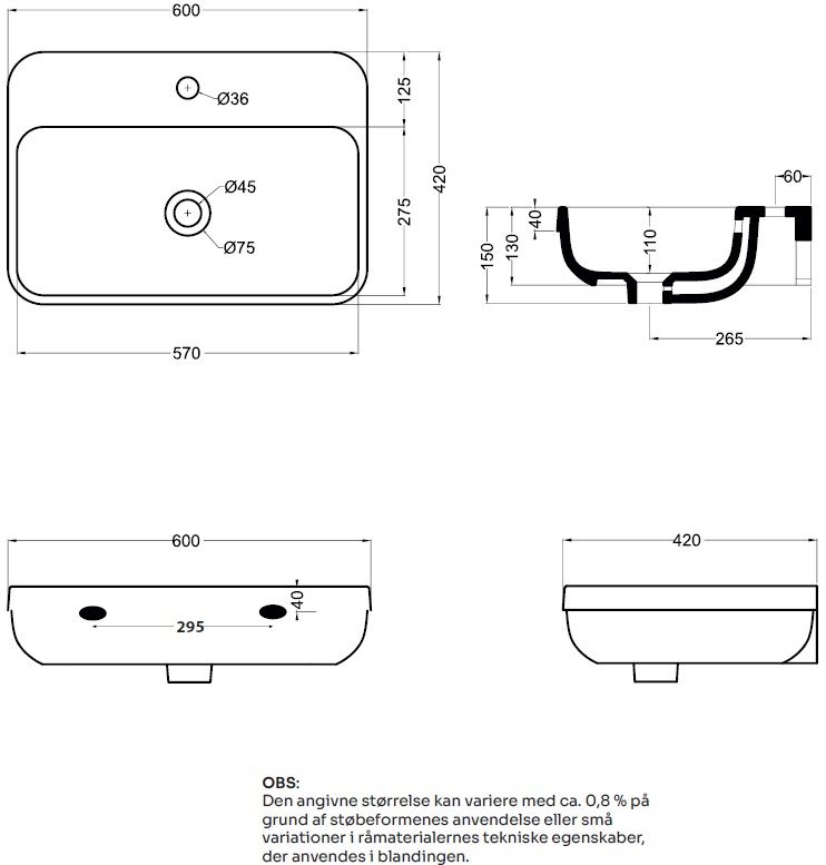 Legacy 60 håndvasken kan enten vægmonteres, placeres på en bordplade eller monteres på et stålmodul (bestillingsvare).