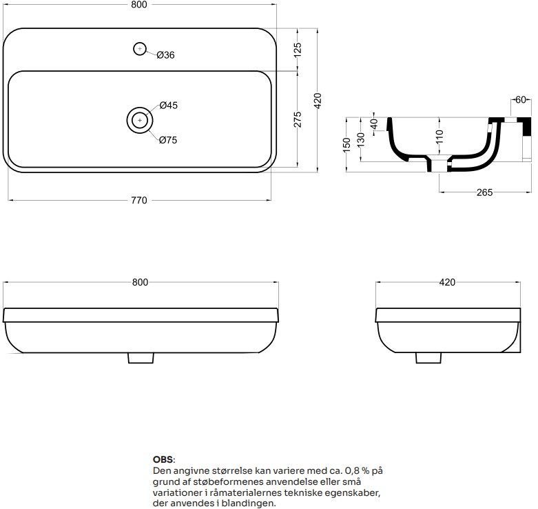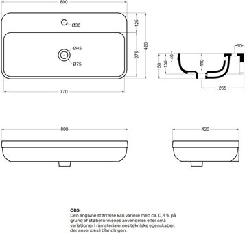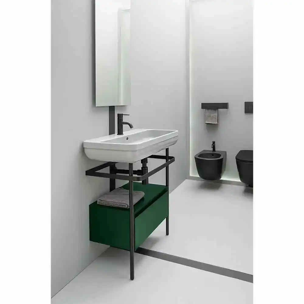 Legacy 80 håndvasken kan enten vægmonteres, placeres på en bordplade eller monteres på et stålmodul (bestillingsvare).