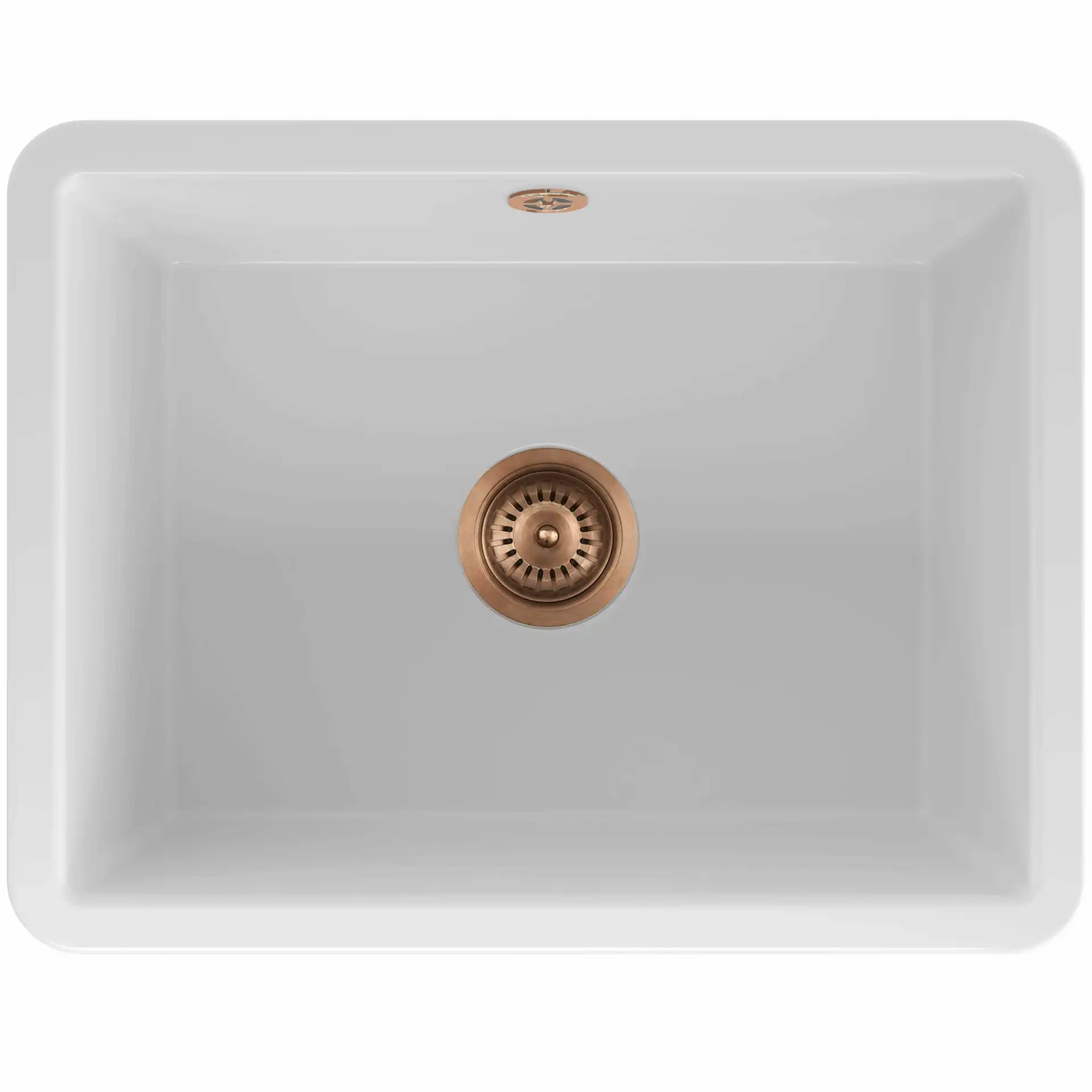 Lavabo Mataro II hvid porcelæn køkkenvask m/kobber afløb til underlimning 495 x 368 mm