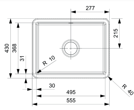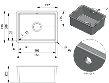 Lavabo Mataro II køkkenvask med kobber overløb og strainer til underlimning eller nedfældning 555 x 430 x 220 mm, art.nr. R38277K
