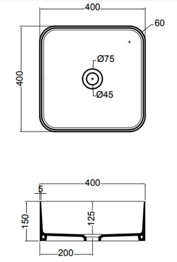Mål: 400 x 400 x Højde 150 mm