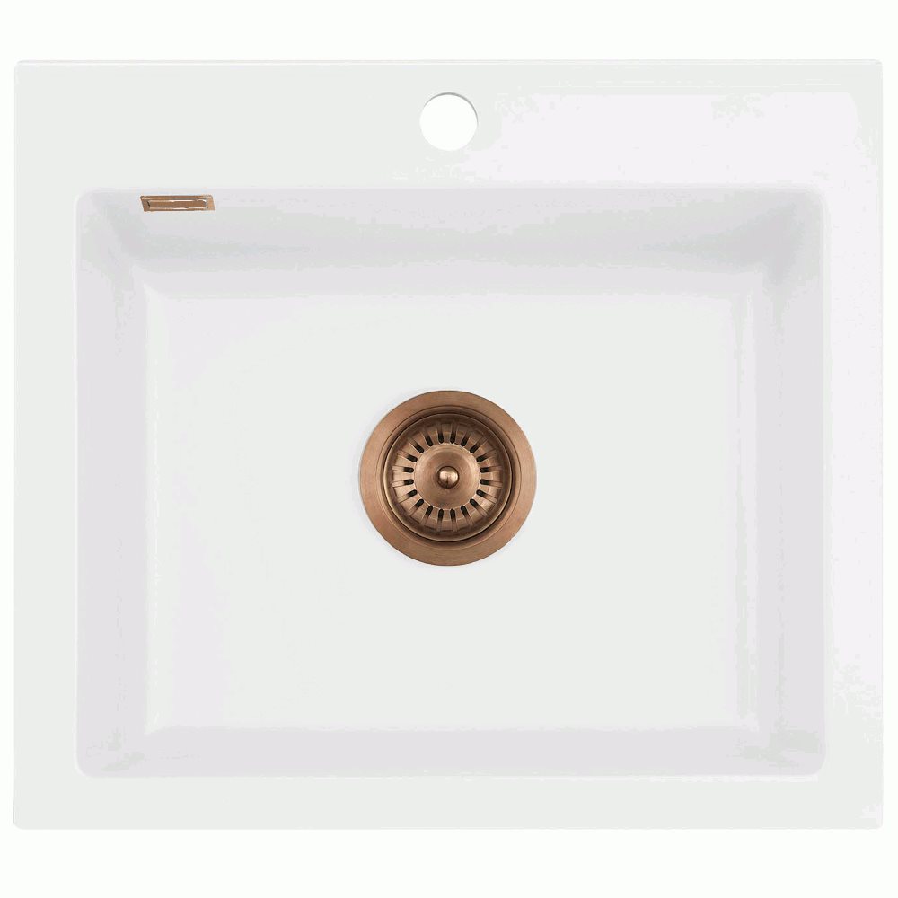Lavabo Mera 57 mat hvid køkkenvask 57,5 x 51 cm i keramik til nedfælding med kobber bundventil
