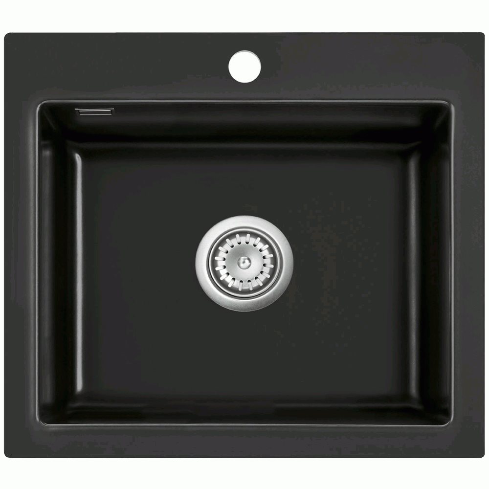 Lavabo Mera 57 mat sort køkkenvask 57,5 x 51 cm i keramik til nedfælding med krom bundventil