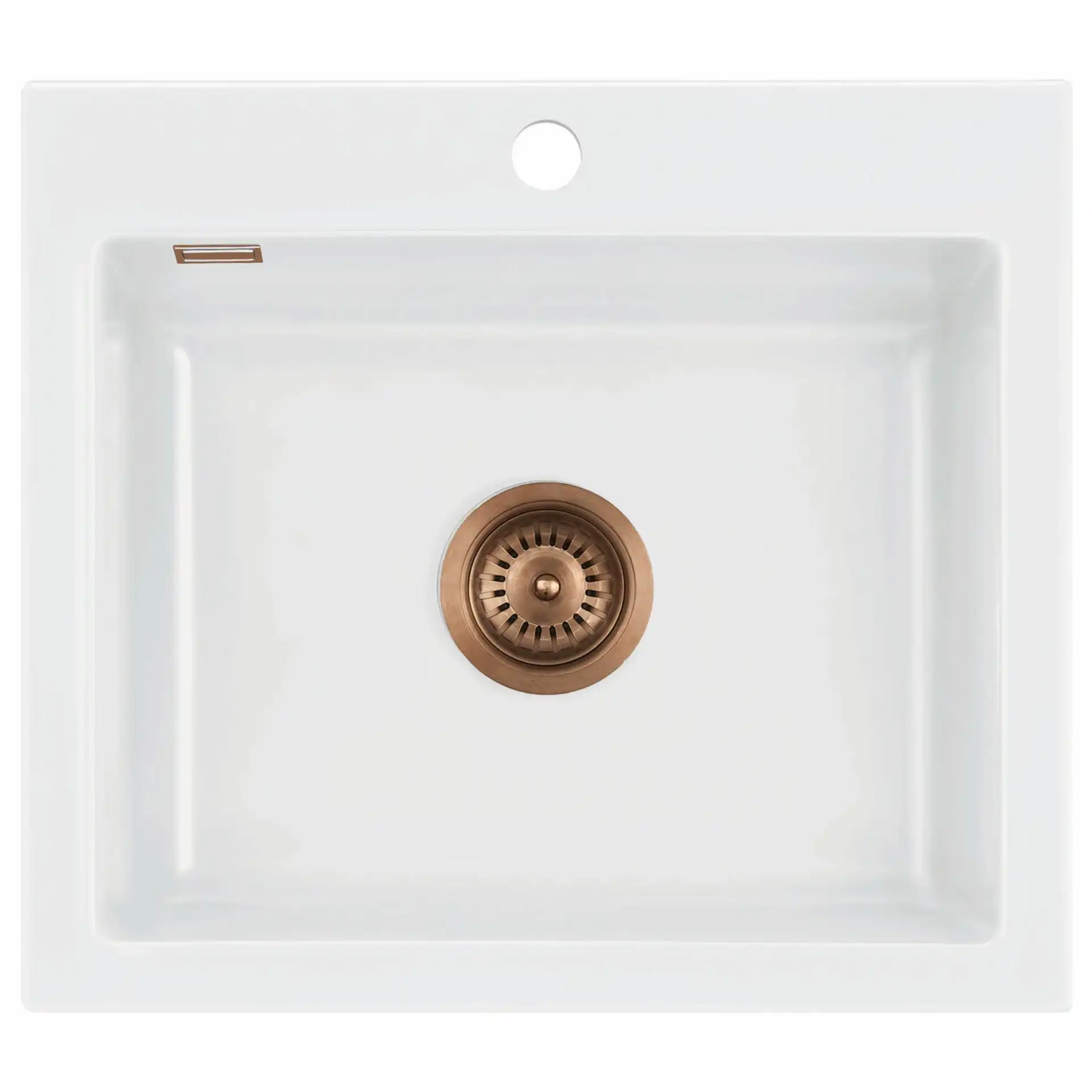 Lavabo Mera 57 hvid køkkenvask 57,5 x 51 cm i keramik til nedfælding med kobber bundventil