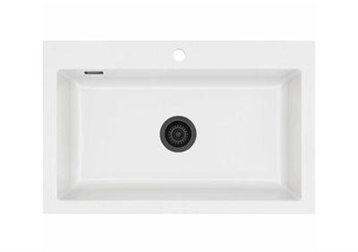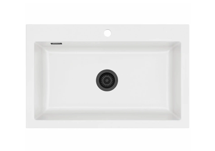 Lavabo Mera 80 porcelæn køkkenvask med hanehul og sort afløb 800 x 510 mm til nedfældning i Mat hvid