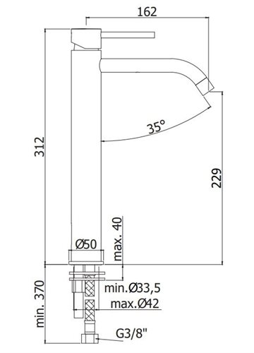 Det høje slanke håndvaskarmatur er særdeles velegnet til en vask, der er placeret ovenpå bordet, en såkaldte bowle vask.