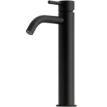 Det høje slanke håndvaskarmatur er særdeles velegnet til en vask, der er placeret ovenpå bordet, en såkaldte bowle vask.