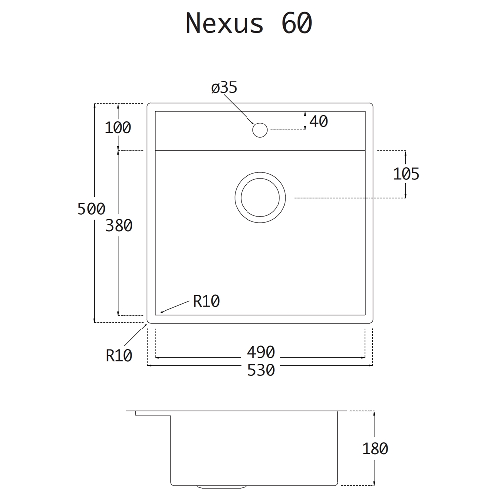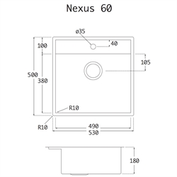 Lavabo NEXUS 60 Køkkenvask 53 x 50 cm i Rustfrit stål med hanehul og overløb