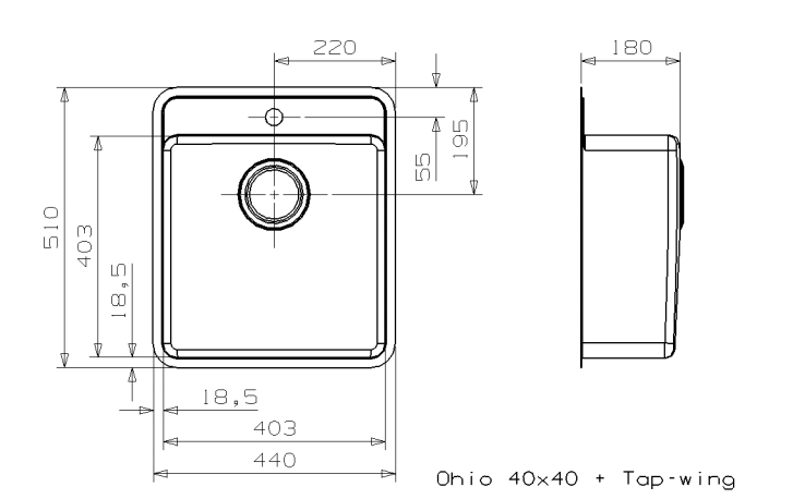 Lavabo Ohio 40 TW køkkenvask  44 x 51 cm i rustfrit stål
