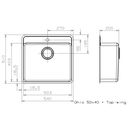 Lavabo Ohio 50 TW køkkenvask med hanehul i rustfrit stål