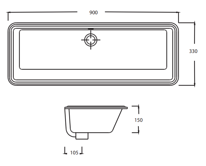 Ingen hanehul, hvilket gør vasken velegnet til enten en vandhane i bordpladen eller monteret på væggen.