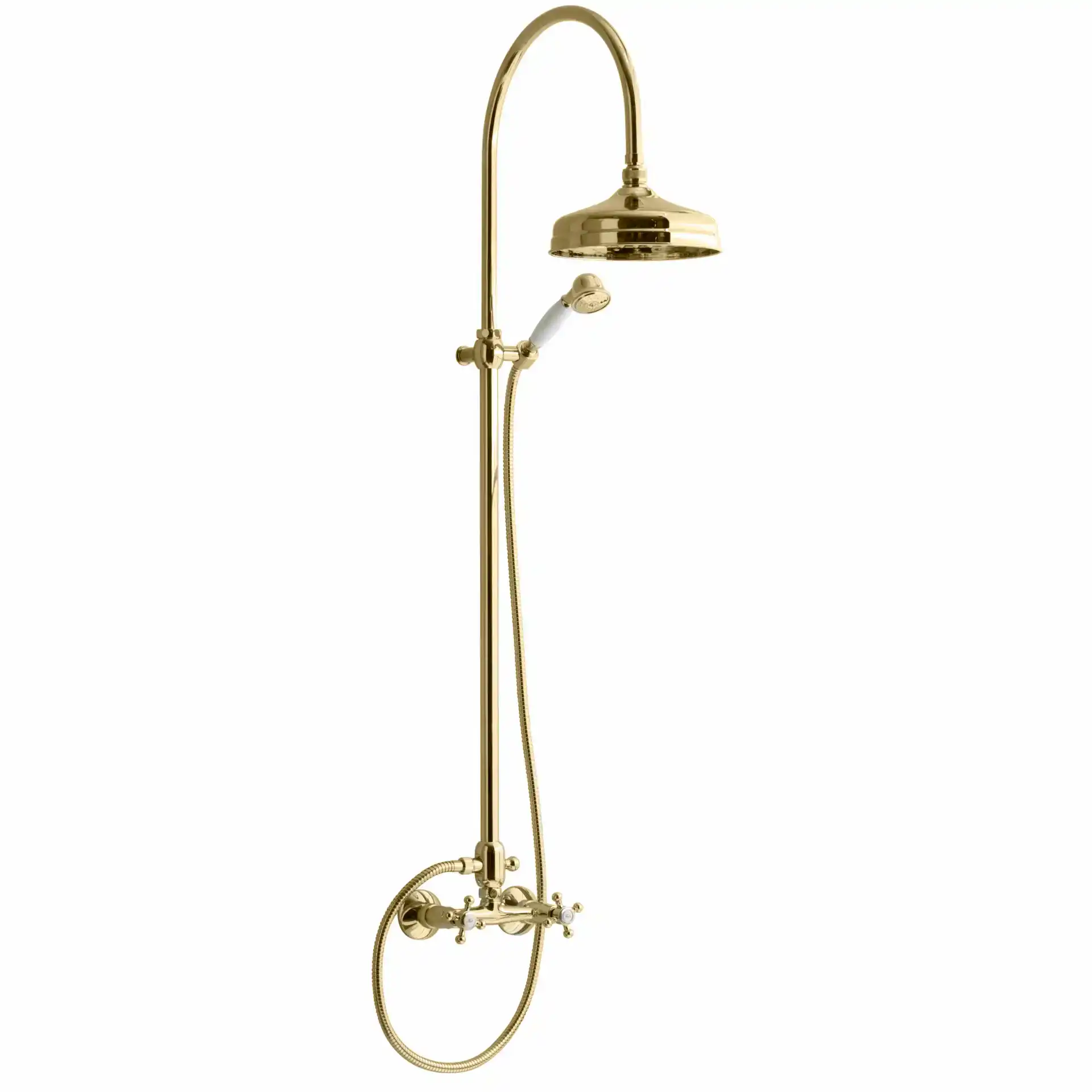 LAVABO Retro 2-grebs Brusesystem Komplet med elegant Ø210mm brusehoved og håndbruser i natur messing, art.nr. 53024