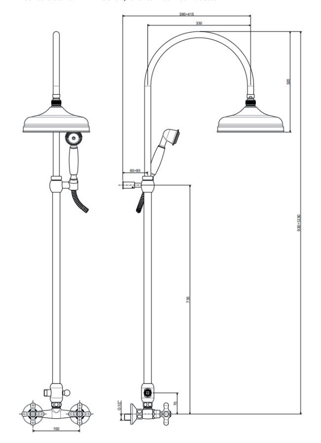 - Højde indstillelig brusestang (mellem 930 - 1230 mm)