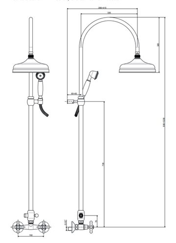 LAVABO Retro 2-grebs Brusesystem Komplet i Natur messing