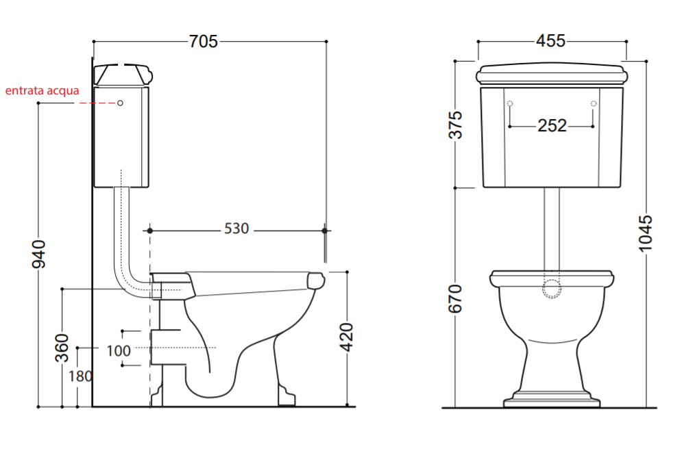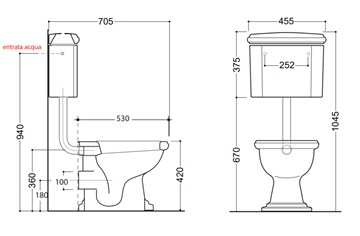 Lavabo Retro gulvstående toilet med P-lås med cisterne og krom rør (det vil sige, hvor afløbet går vandret bagud, kaldes også universal lås).
