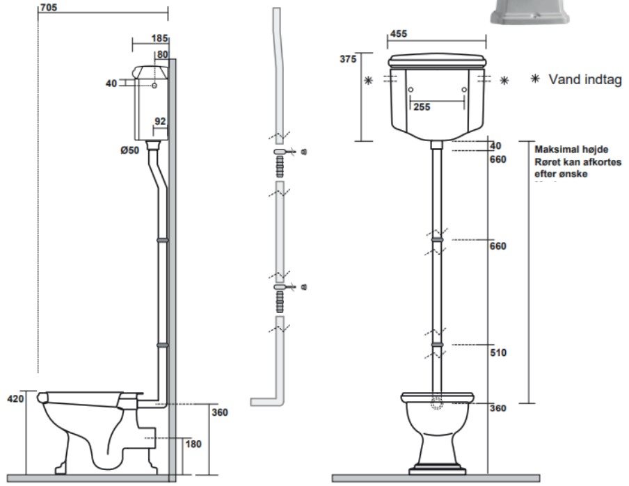 Højt monteret cisterne.
