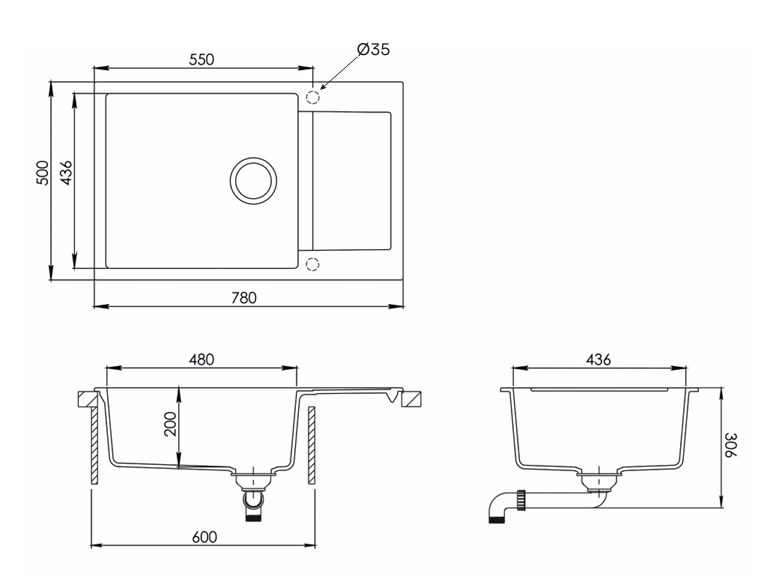 Køkkenvasken er med stor kumme i enkelt design med en praktisk afsætningsbakke og med hanehul til vandhanen. Vasken er vendbar, så du selv bestemmer om bakken er til højre eller venstre.