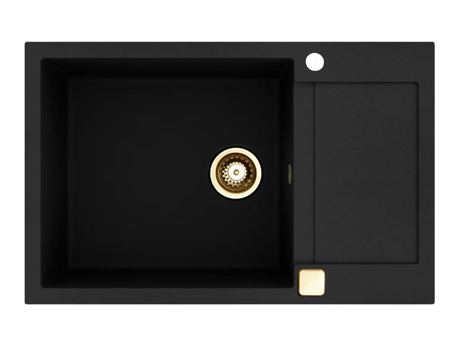 Lavabo Saturn 790 Køkkenvask 78x50cm med afsætningsbakke m/PVD messing strainer, Nedfældning