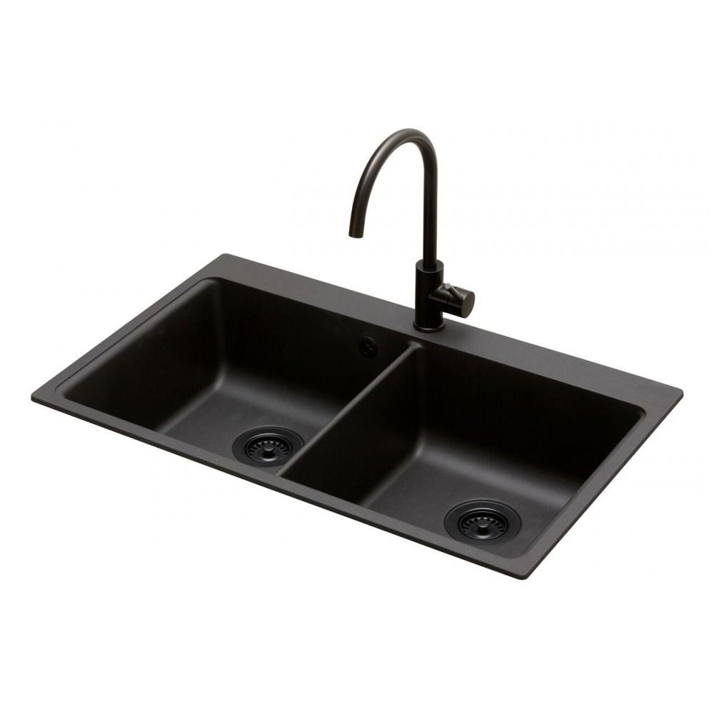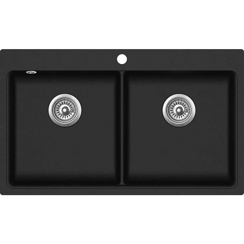 Lavabo Saturn 86 dobbelt komposit Køkkenvask med krom kurveventil med hanehul til vandhane samt overløb. art.nr. 12010