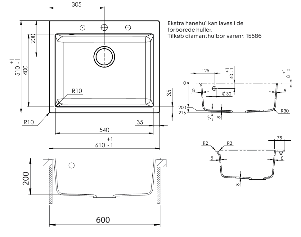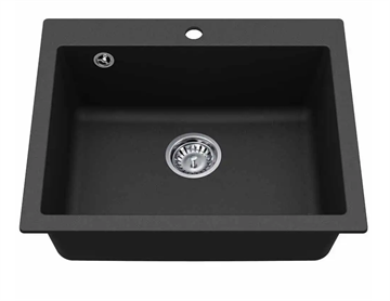 Køkkenvasken er fremstillet i komposit materiale af høj kvalitet, der består af knust granitgranulat og bindemiddel, som giver et slidstærk og rengøringsvenlig materiale, der let modstår hverdagens strabadser i form af opvask, rengøring, madlavning.