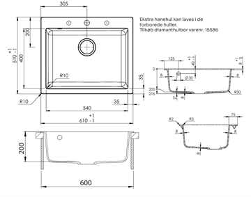 Ved nedfældning skæres et hul i bordpladen, hvorefter vasken bliver monteret oppefra og ned i udskæringshullet. Du vil derfor opleve en lille kant mellem køkkenvasken og bordpladen.