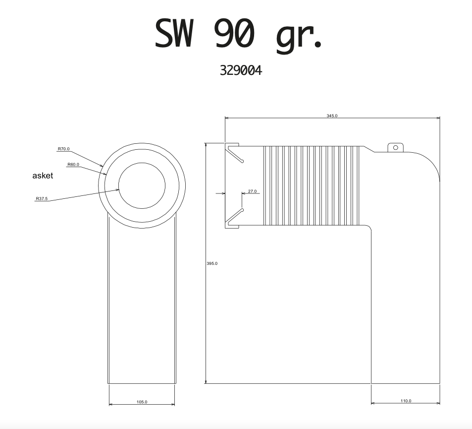 Lavabo SW-rør, 90 graders rør - 90-160 mm