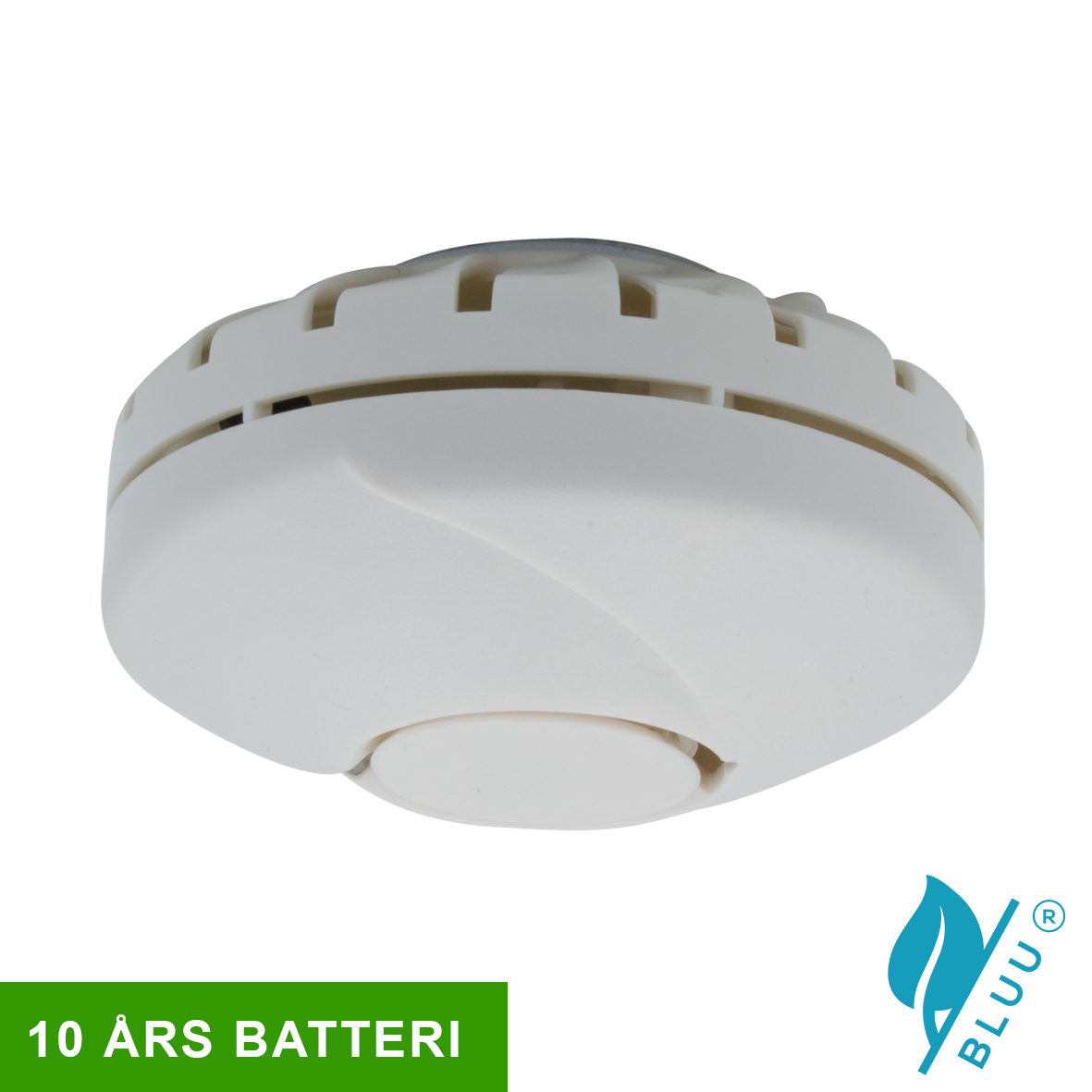 Life varmealarm circle 10+ med 10 batteri og pausefunktion. Leveres komplet med 3M monteringstape, beslag, skruer og rawlplugs. Anvendes fx i køkken og fyrrum eller andre steder hvor ”falsk” røg kan forekomme. CE godkendt - 5 års garanti.