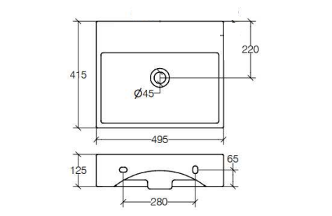 Håndvasken er hvid og uden hanehul, men med overløbshul. Vasken er velegnet til Bord, som Møbelvask eller til vægmontering.