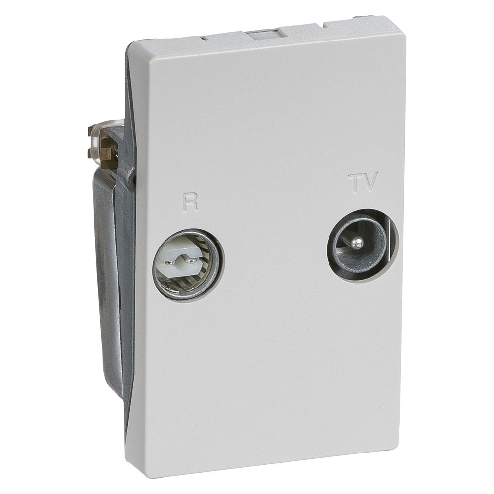 Forsynet med 2 IEC-nomerede udgange for R og TV. Har indbygget R/TV filter, er HF-tæt. Udtagene har lav dæmpning og god filtervirkning.