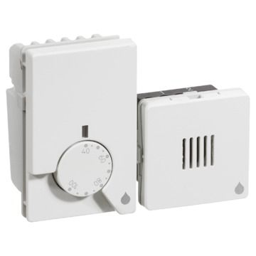 Anvendes til styring af udluftning på toiletter, badeværelser, vaskerum mv. En uafhængig timerfunktion gør det muligt at kombinere ventilatorstyringen med tænding eller slukning af belysningen i rummet. Måler luftfugtigheden og regulerer ventilationen i forhold til den værdi, som er indstillet på drejeknappen for % RH (dvs. % relativ luftfugtighed). Kontrolenheden er beregnet for planforsænket montage med LK FUGA 1½ modul ramme, som monteres med afbryderskruer i indmurings- og indstøbningsdåser, dåser til isætning forfra, samt med CLIC'LINE-rammer i CLIC'LINE kanaldåser. I underlag monteres kontrolenheden (ved brug af skrueindlæg) med vedlagte træskruer, mens rumføleren er forsynet med klostykker. Optimal placering af følerenheden afhænger af flere ting. Det er derfor en fordel at teste systemet inden den endelige installation foretages. Hvis dette ikke er muligt, opnås det bedste resultat ofte ved at placere føleren øverst i "neutralt hjørne", dvs. væk fra luftstrømninger mellem dør/vindue og ventilator. Føleren må ikke udsættes for direkte vandsprøjt. Eller ved klorholdig atmosfære, f.eks. i forbindelse med svømmebassin. Kan ved brug af timerfunktionens impulsindgang kobles som efterløbsafbryder for ventilation, der fungerer når lyset slukkes.