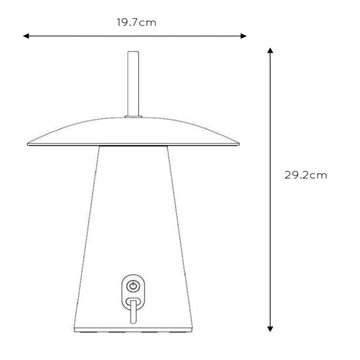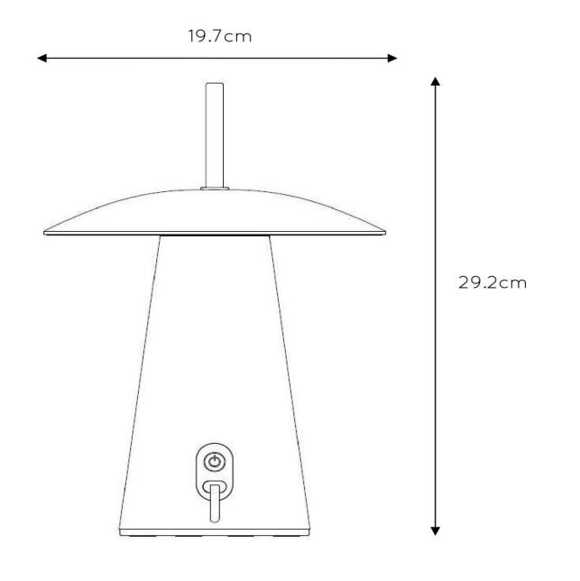 Stilfuld og elegant trådløs bordlampe, som kan bruges udendørs såvel som indendørs. Det integrerede batteri kan oplades inden for ca. 4,5 timer vha. det medfølgende opladerkabel. Lampen har 3 lysstyrker.