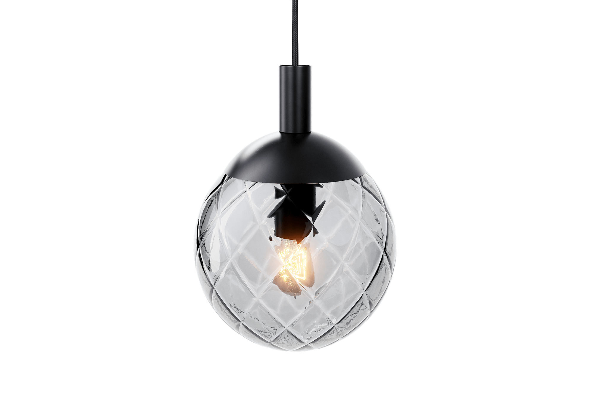 Farve: Mørktonet glas - sort base - basen mod loft i samme farve som skærmen