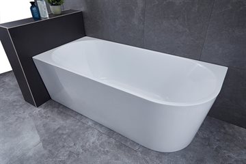 Dette Back to corner hjørnebadekar er helstøbt med front og gavl og leveres med pop-up ventil og overløb i krom