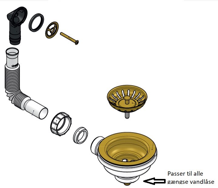 Messing Strainer/afløbssæt passer til IKEA køkkenvask - vælg