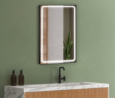 Mia-1 spejl med integreret front LED lys og diskret matsort aluminiumsramme - 50x80 cm
