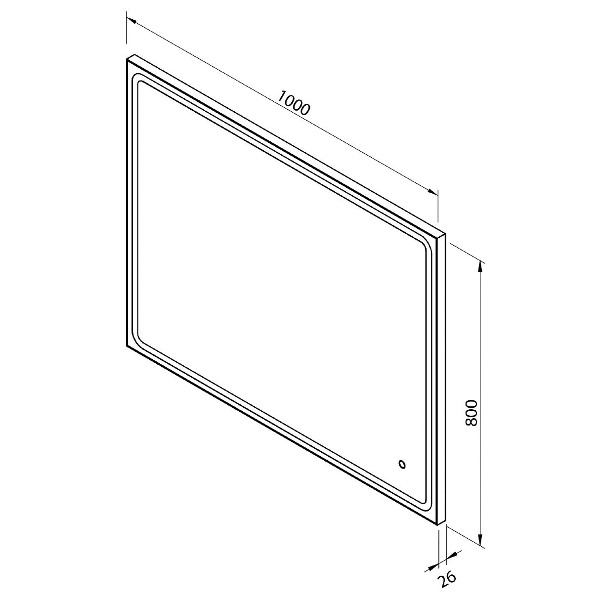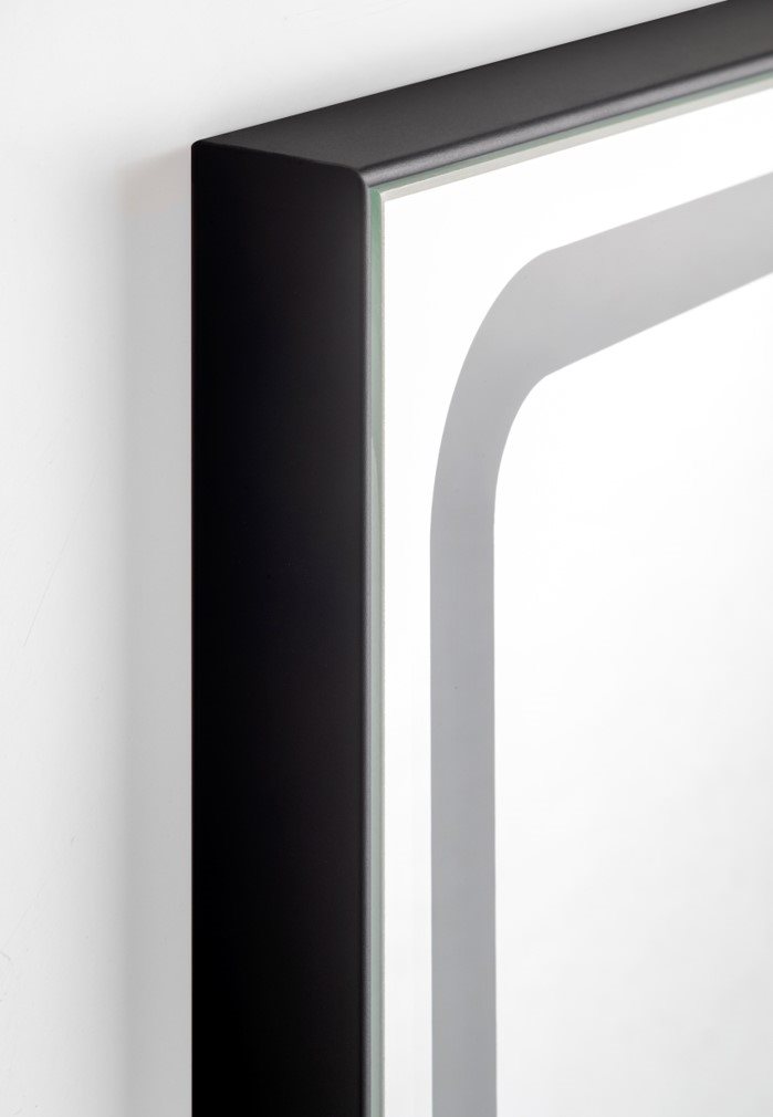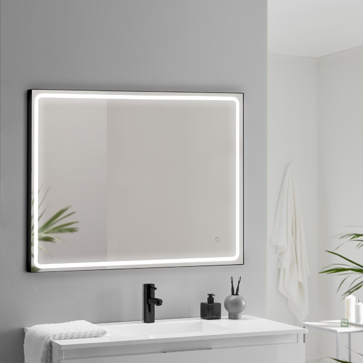 Mia-1 spejl med integreret front LED lys og diskret matsort aluminiumsramme - 100x80 cm