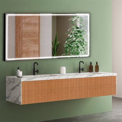 Mia-1 spejl med integreret front LED lys og diskret matsort aluminiumsramme - 160x80 cm