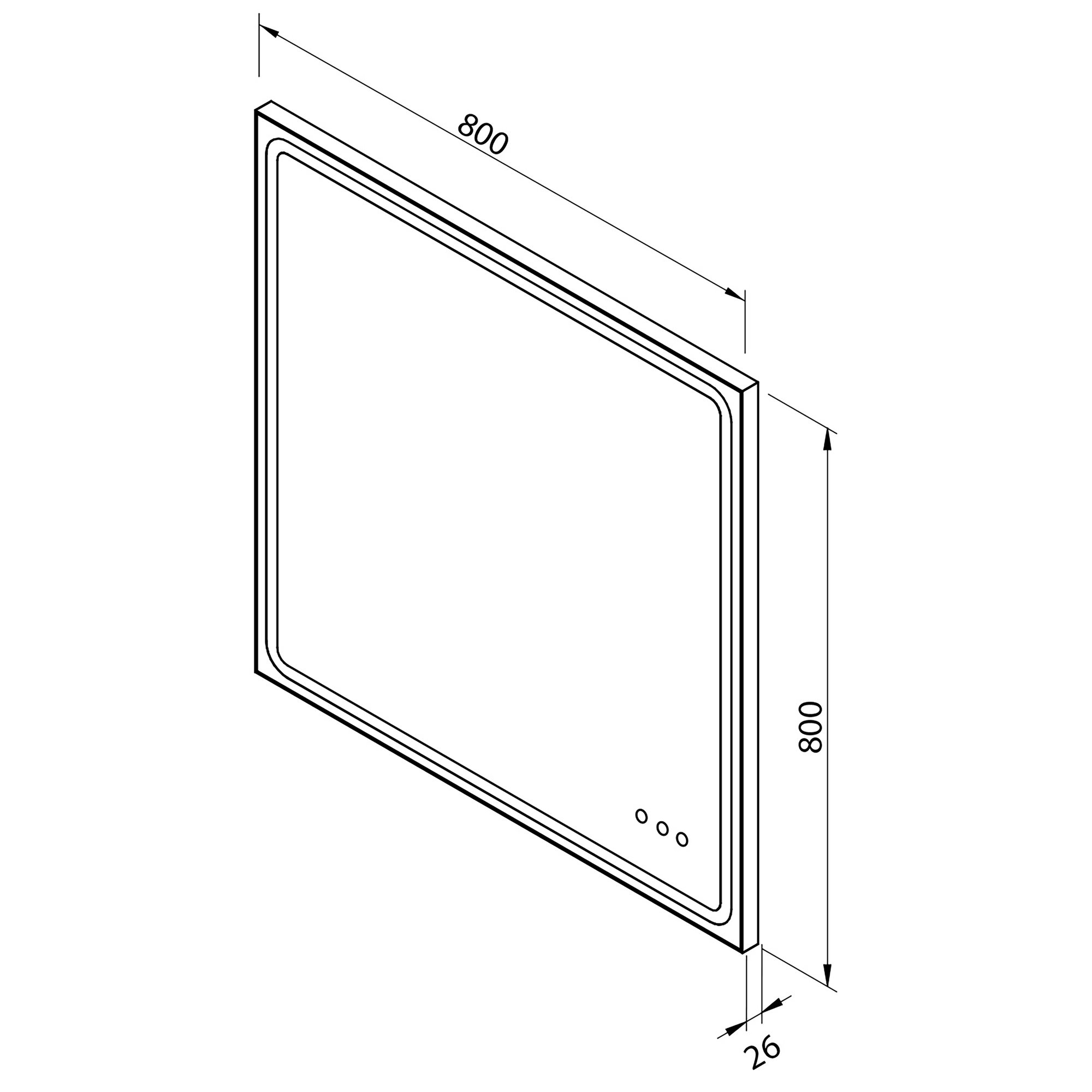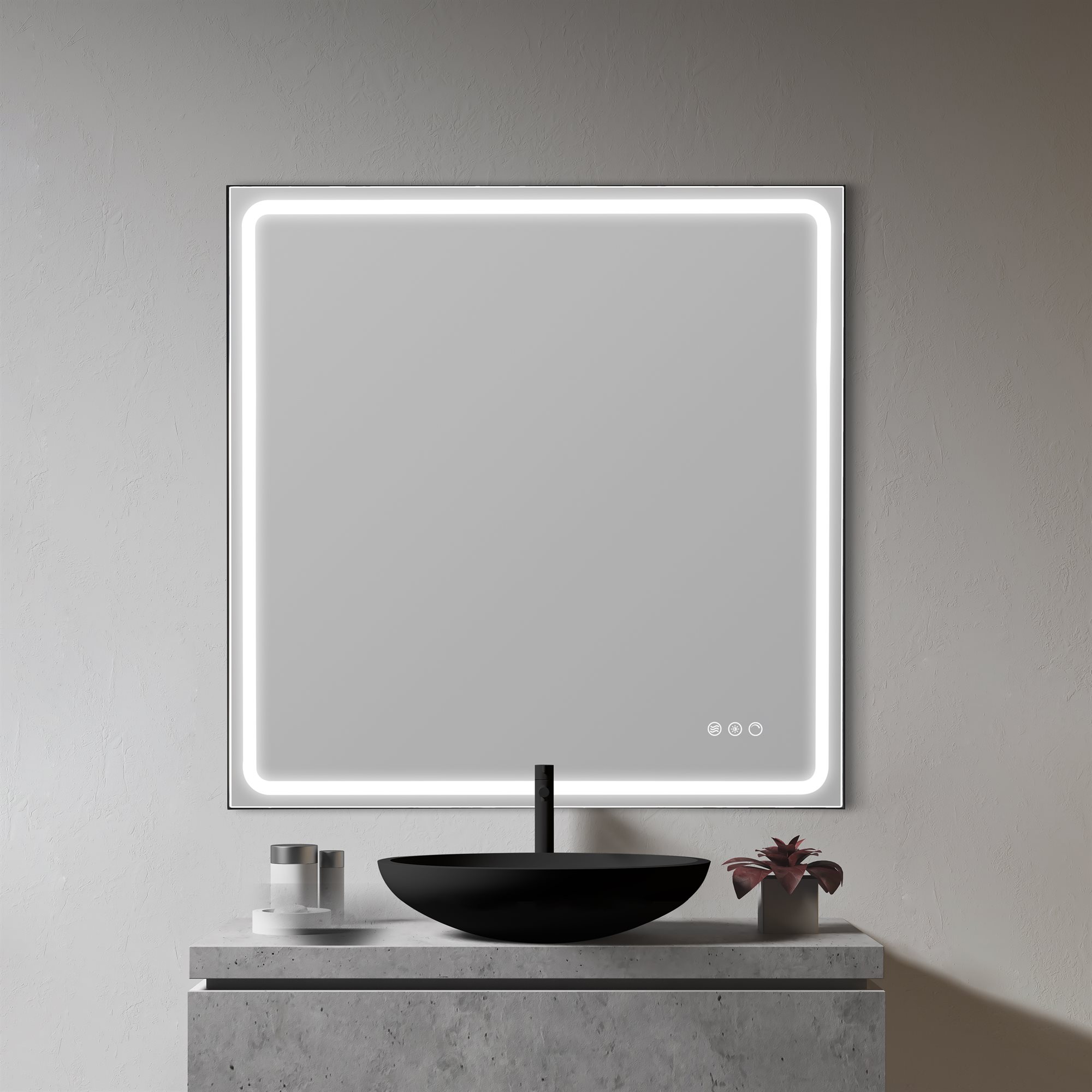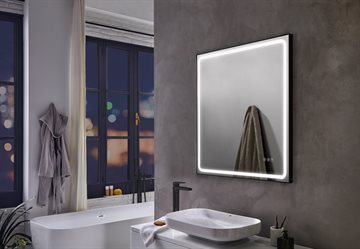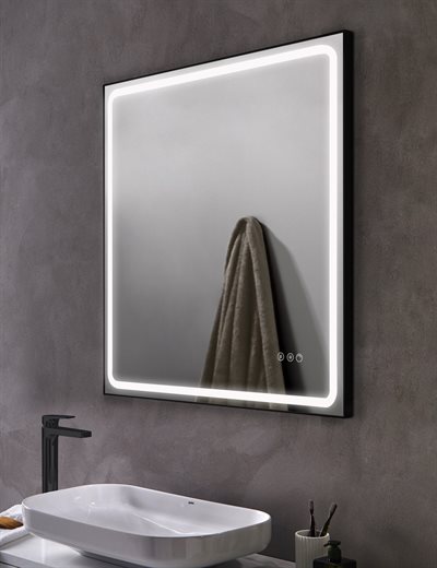 Mia-3 spejl med antidug, lysstyring & matsort ramme 80x80 cm